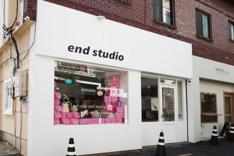 부산 광안리에서 케이크를 만들 수 있는 이앤디스튜디오는 지하철 2호선 광안역에서 멀지 않은 곳에 있다. 저희는 차로 갔는데 가게가 주택가 골목에 있어요.<内部>